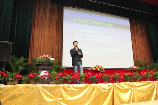 2012年11月21日,我院副主任医师、温州医学院副教授叶敏捷老师应邀参加温州大学第九届大学生心理健康教育活动月开幕式暨心理委员培训开班仪式,并为前来参加培训的心理委员们开展了关于人际交往与自我成长的讲座。